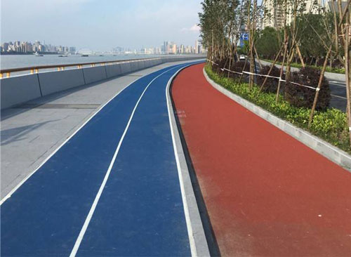 韌性好、不開裂、色澤鮮艷、不掉色、不脫皮、施工快(日施工1500平)、施工完畢1小時(shí)開放交通、零下20攝氏度也能正常施工,噴涂/刮涂工藝方式鋪裝,施工省時(shí)省力,效率高。